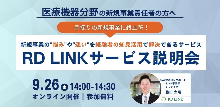 9/26 手探りの新規事業に終止符!医療機器分野向け、理系プロ人材のシェアリング『RD LINK』サービス説明会|無料ウェビナー(企業向け)